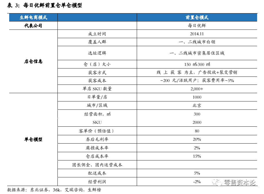 为更加深入了解前置仓模式的盈利能力和驱动因素,以每日优鲜为例,对其单店模型拆解如下: