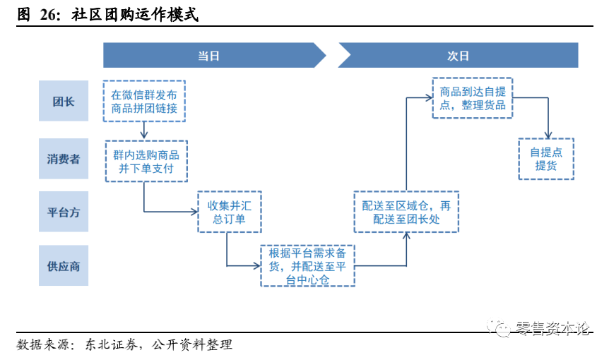 社区团购的运作模式:平台招募团长,由团长负责社区内的销售与社群管理活动,团长获得相应的佣金。