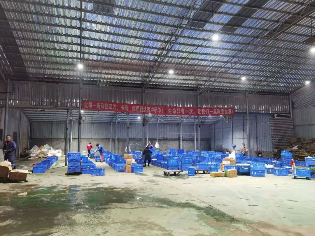 在湖南,供应商的货物会最先到达共享仓,在共享仓进行调整后,用9.6米的大货车送到位于长沙高星物流园的中心仓;中心仓再将货物用4.2米的车送到各个城市的首页仓,首页仓再将货物配送到网格仓。网格仓进行分拣之后,送到乡镇的自提点,也就是团长那里。