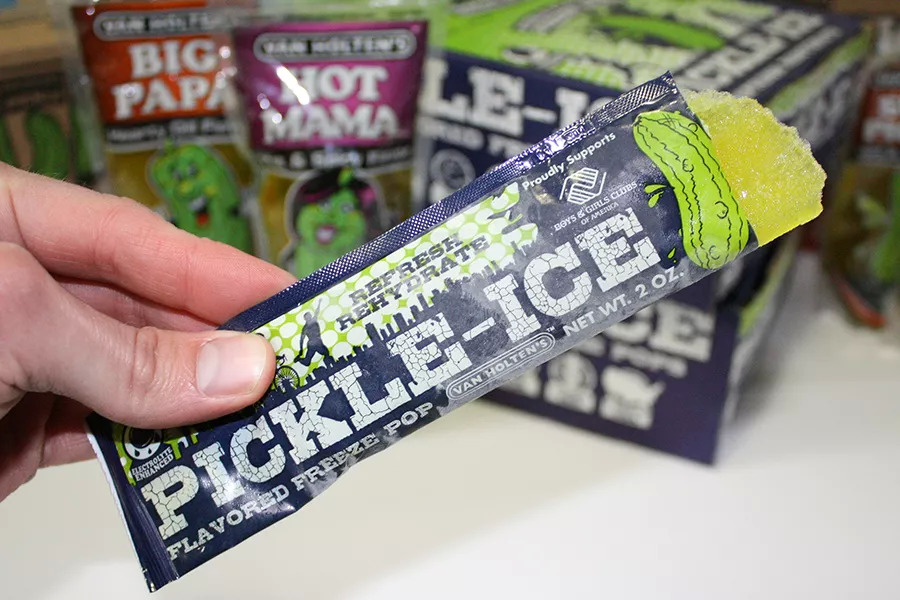 除了自身的创新,泡菜也可以尝试往其他品类发展,打破泡菜只能用于餐饮场景的固有印象,尝试与零食饮料进行跨界交流。比如,Hammond’s糖果公司推出的含莳萝泡菜的爆米花,Giant Snacks推出了低盐烤制的带有甜泡菜味的葵花籽,而Van Holtens推出了一款用泡菜味果汁制成的无气泡饮料Pickle-Ice。