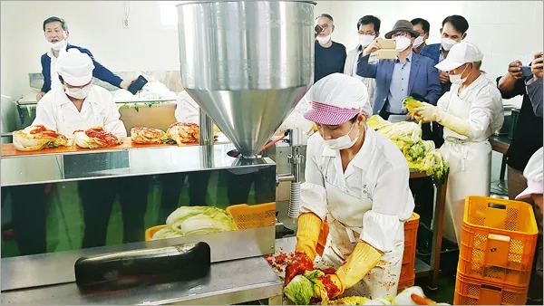 除了企业自身的努力外,韩国政府也在通过积极助力泡菜产业。包括建立稳定的泡菜原料供应系统,完善泡菜质量标签系统,制定《泡菜风险管理指南》,提供HACCP咨询等。为了解决泡菜产业机械化的难题,韩国农林畜产食品部和世界泡菜研究所合作开发了商业化的“自动泡菜调味设备”,能够实现混料90%的完美度,极大地解放了泡菜产业的劳动力。同时,世界泡菜研究所推出“KimchiOn“定制化小程序,根据消费者口味推荐通过研究所验证标准的中小型泡菜生产商,破除行业垄断,鼓励创新竞争。