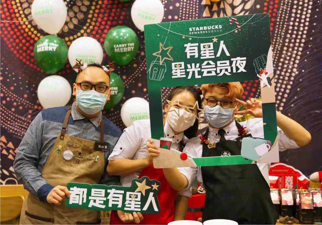12月17日,星巴克国内2500多家门店举办了一年一度的“有星人(星享俱乐部的会员)”星光年会,几万名“有星人”来到门店。