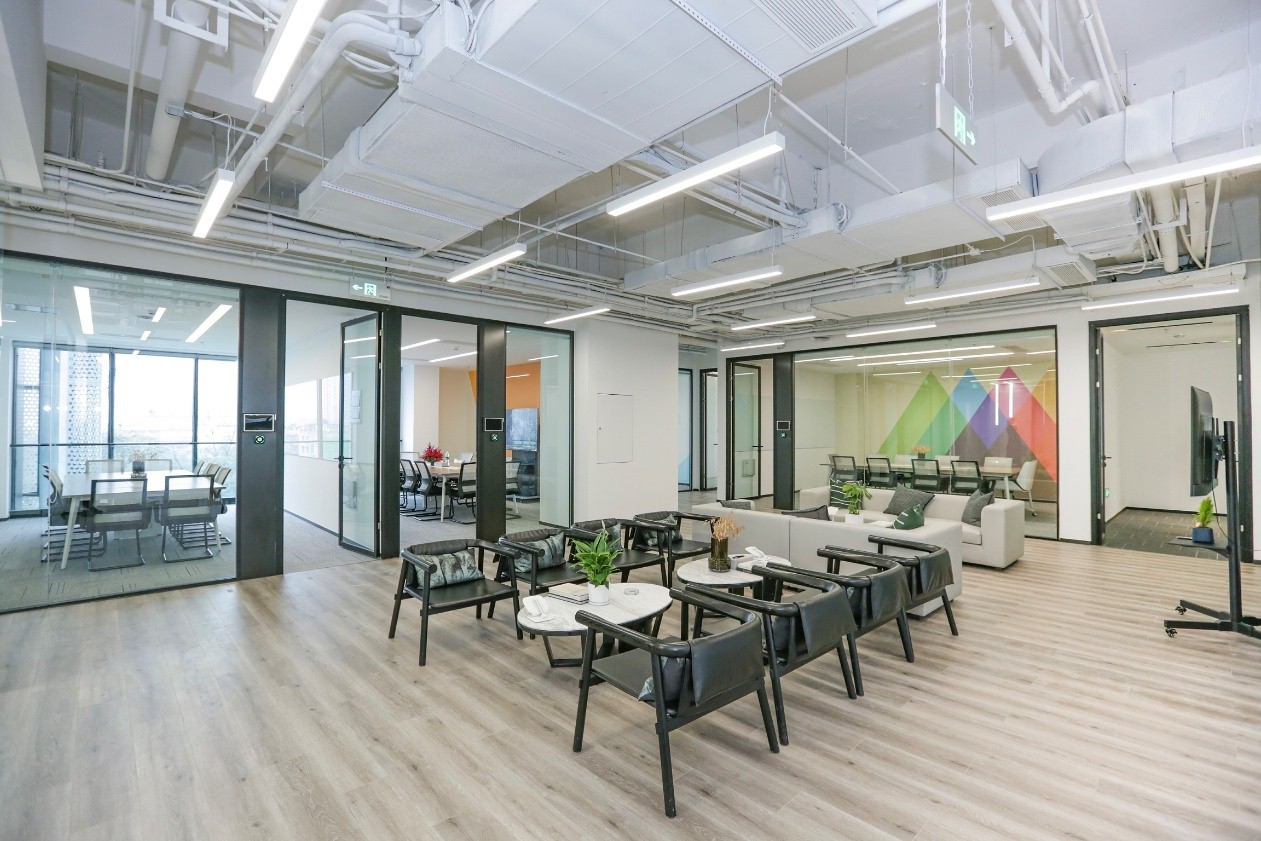 同时,建面约2600㎡的6F智能共享办公区域,不仅提供拎包即入驻的精装共享办公产品,更有全维共享配套设施,包括多功能路演厅、会议室、户外花园、睡眠舱、茶水间等,为企业提供快速入驻及灵活办公等多样化的办公解决方案。