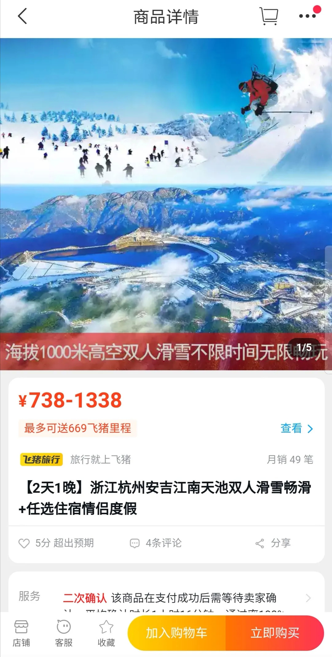 相较滑雪发烧友,滑雪体验群体的数量更为庞大。国内主要滑雪的人群还是以旅游体验为主,78%的人属于一次性体验。但是随着2022年冬奥会的成功申办,原本小众的滑雪圈子正在逐渐降低门槛。截至2019年,全国范围内兴起了770个大大小小的滑雪场,以浙江安吉江南天池滑雪场为例,飞猪上双人滑雪游的价格已经低至738元。