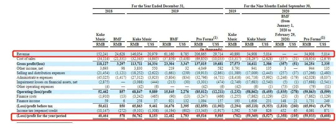据招股书披露, 2018年和2019年,库客音乐的营业收入分别为1.52亿元和1.46亿元,净利润分别为4046万元和5676万元。2020年前三季度,库客音乐的营收为3490万元,净亏损为5993万元,相比2019年同期的70万元扩大了83.6倍。对此,库客音乐表示,2020 年亏损的主要原因是运营成本的上升和疫情的影响。