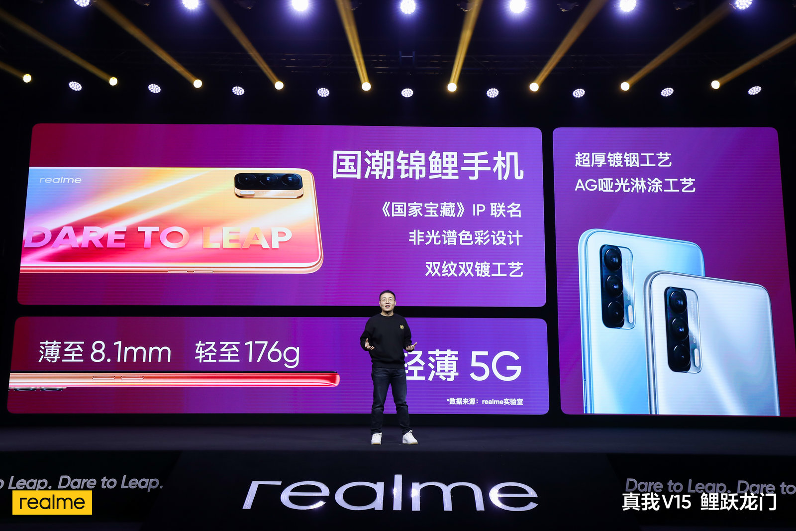 1月7日,realme率先发布了2021年首款手机新品V15,提供锦鲤、镜湖、新月三色可选,起售价1399元。