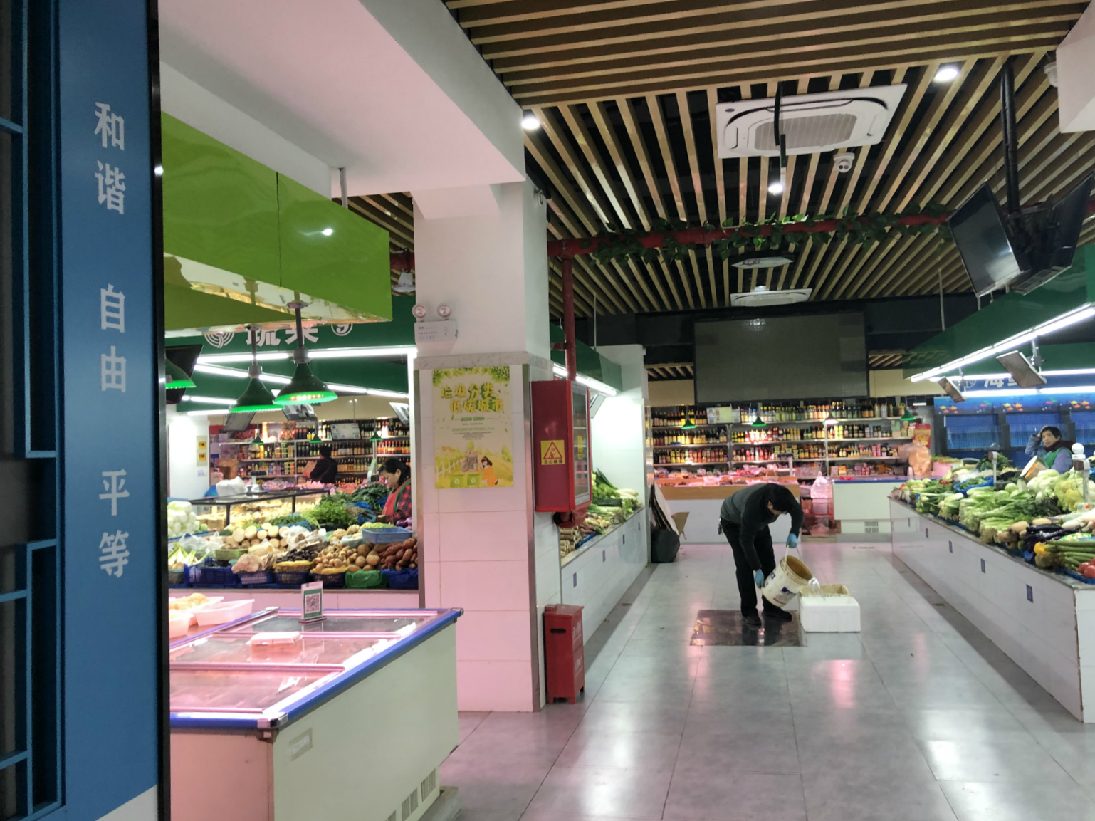 同一时刻,距离这家盒马100多公里的苏州市三元二村小区已经稍显寂静。小区建于90年代,有着苏州最老的菜市场之一。盒马关店的时候,在小区菜市场做生意的马姐和丈夫已经休息了两个小时。每晚七点,菜市场就全部关门了。
