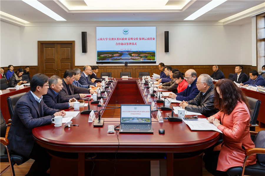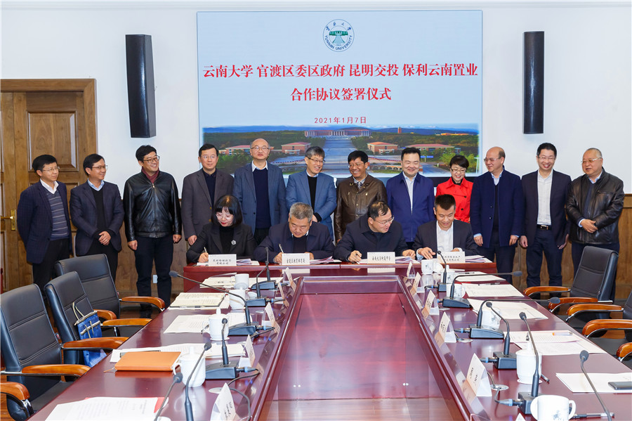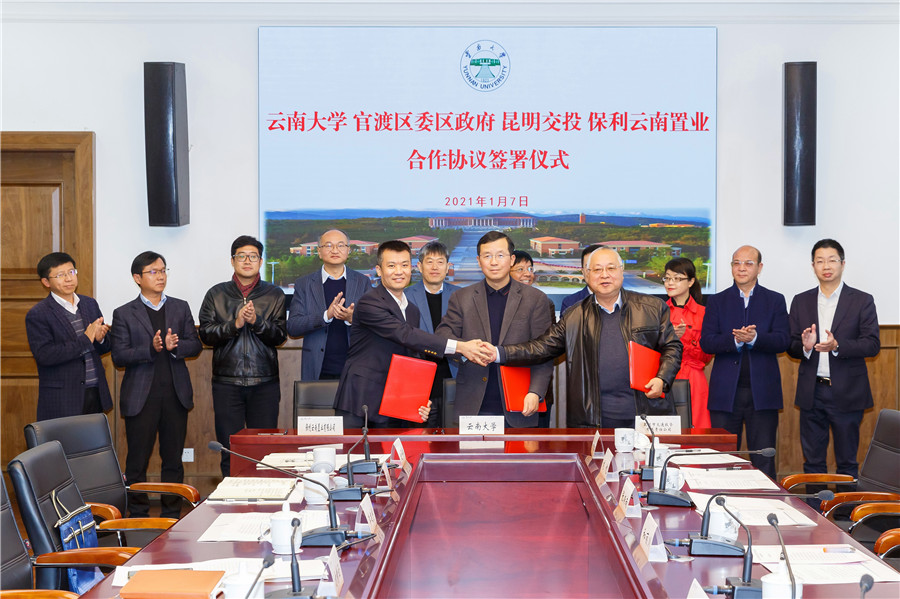 2021年1月7日,云南大学、官渡区委区政府、昆明市交通投资有限责任公司、保利云南置业有限公司合作协议签署仪式在云南大学呈贡校区举行。昆明市官渡区委书记和丽川、区长周燕,保利置业集团有限公司董事会主席张炳南,保利云南置业有限公司董事长刘雨,昆明市交通投资有限责任公司董事长雷升逵、总经理金炜,云南大学校长方精云院士,党委副书记李建宇,常务副校长李晨阳出席签约仪式。出席仪式的还有昆明市官渡区委区政府,官渡区教育体育局、昆明市交通投资有限责任公司、保利置业集团、保利云南置业有限公司、昆明喻昭投资有限公司有关负责人,云南大学相关职能部门主要负责人。
