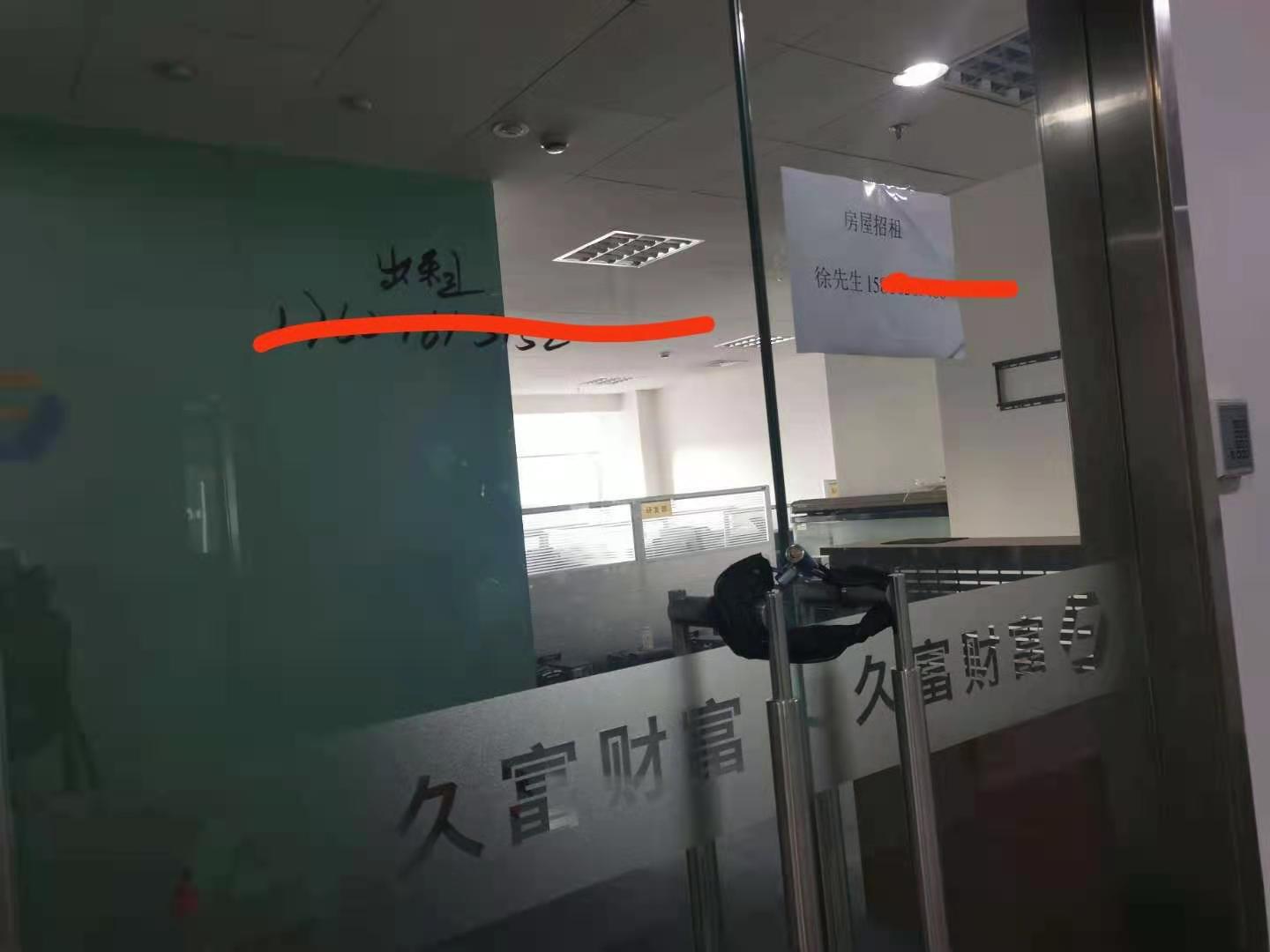 当天下午,界面新闻记者来到信息大厦12楼,现场同样人去楼空,大门紧锁,屋内地板上仅剩下一地废纸和一些电脑主机等杂物。一位在该楼层办公的其他公司职员表示,久富资产搬走好久了。