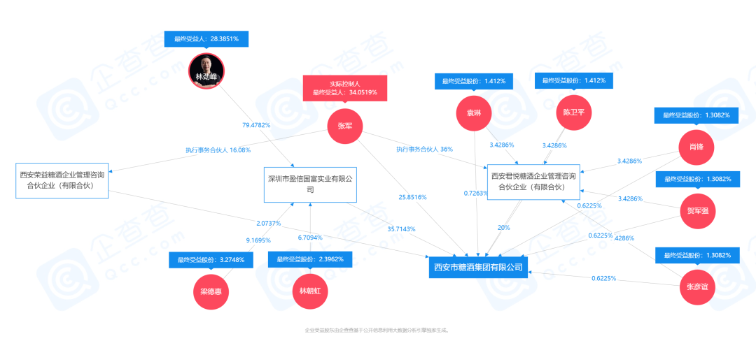 公开报道显示,2015年,深圳市盈信国富资产管理有限公司(现为深圳市盈信国富实业有限公司,简称盈信实业)以增资555.5559万元的方式,投资西安市糖酒集团有限公司(简称糖酒集团),持股35.71%,成为糖酒集团的第一大股东。