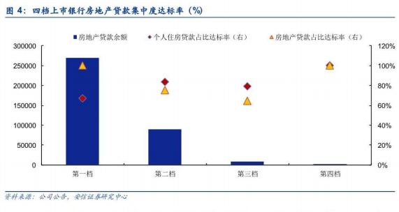 光大证券认为,房地产贷款集中度管理政策的初衷,在坚持房地产融资稳中从紧的原则下进行差异化调节,对上市银行而言,房地产总增量受影响不大,主要是银行间存在差异化影响,大型银行中,建行、中行和邮储银行超标;股份制银行中,招行、中信、浦发、平安,兴业超标,部分城商行超标。以上银行将面临2~4年的过渡期安排。