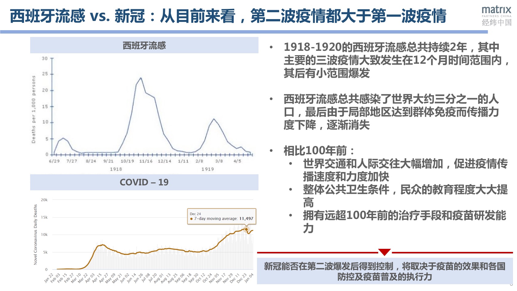 与100年前相比,世界的交通和人际交往大幅增加,加快了本次新冠疫情传播速度和力度。但与此同时,整体的公共卫生条件以及民众的教育程度大大提高,也拥有远超100年前的治疗手段和疫苗研发能力。