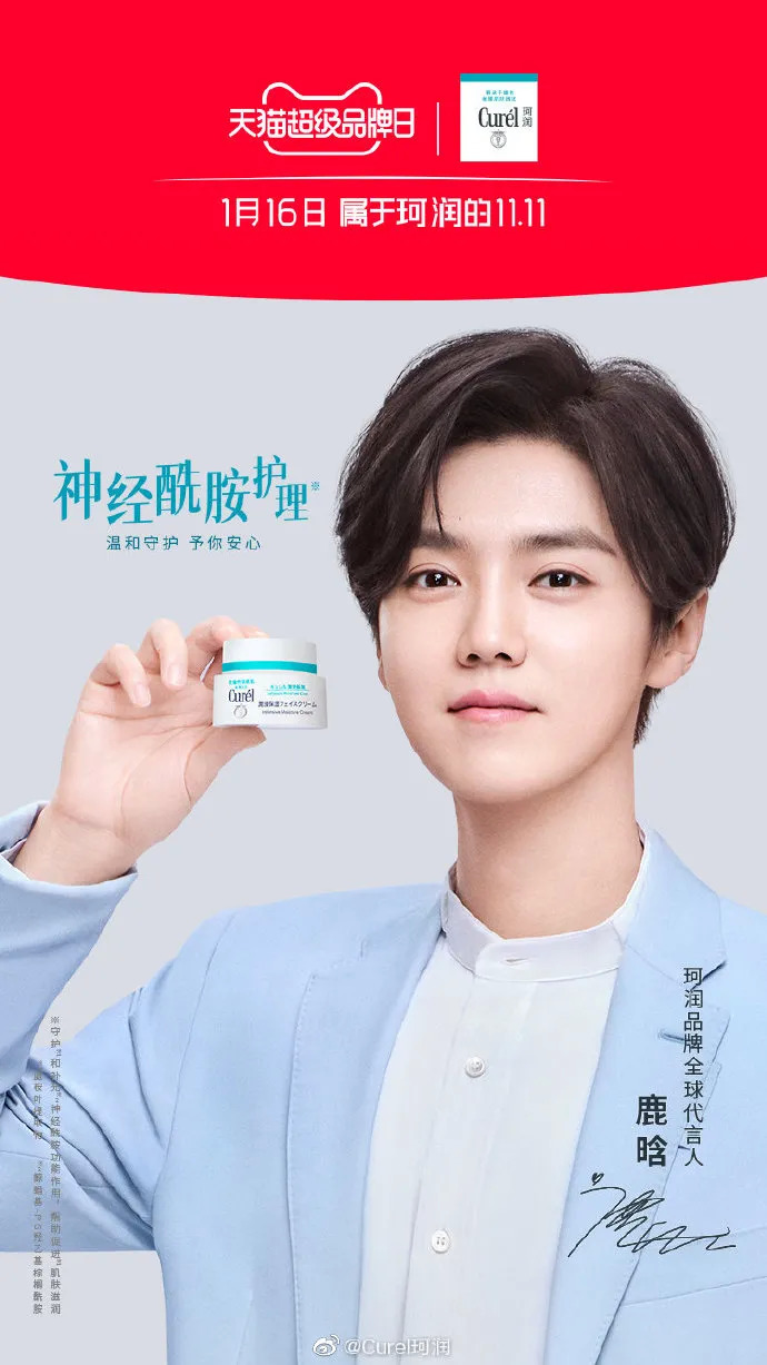 2021年1月4日,鹿晗成为珂润品牌全球代言人。