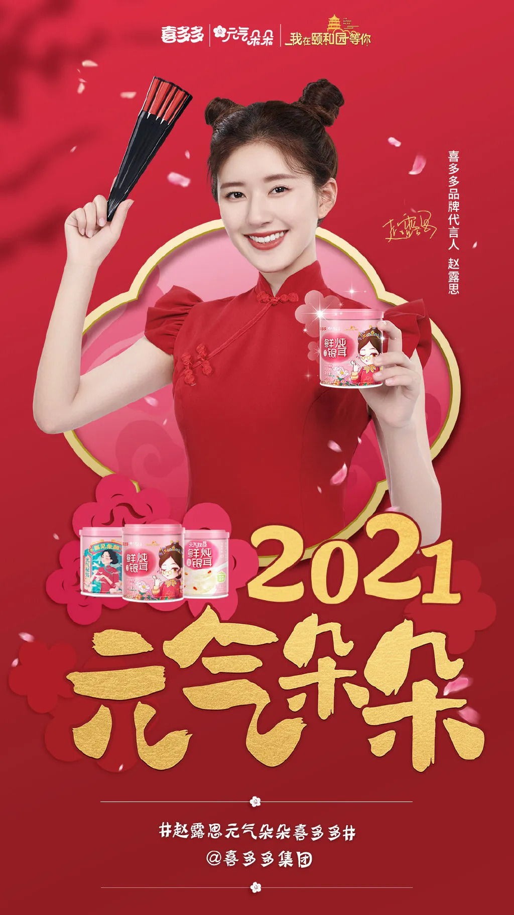 2020年12月30日,赵露思成为喜多多品牌代言人。