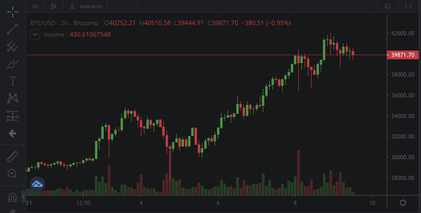 Bitstamp平台报价显示,比特币跌破40000美元/枚。
