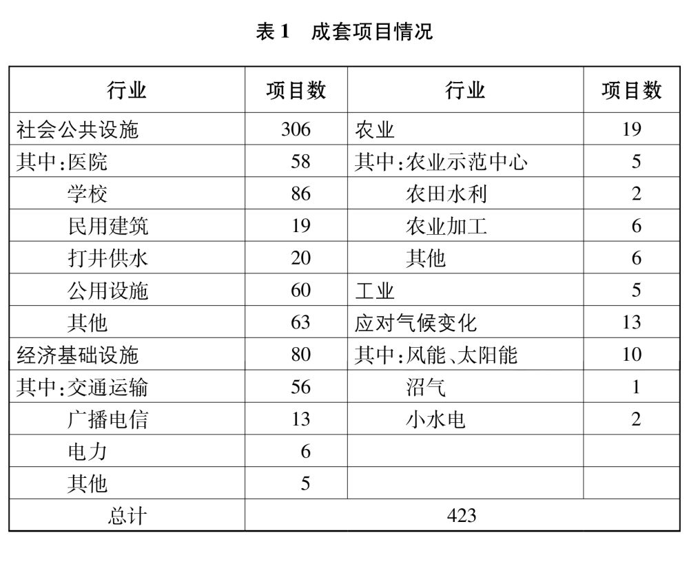 ——援建成套项目。2013年至2018年,中国共建设成套项目423个,重点集中于基础设施、农业等领域。除传统的“中方代建”援建模式外,在部分有条件的国家试点“受援方自建”方式,即在一些有完备工程建设招投标管理体系、具有组织实施经验的国家和地区,中国提供资金和技术支持,由有关国家自行负责项目的勘察、设计和建设及过程管理。
