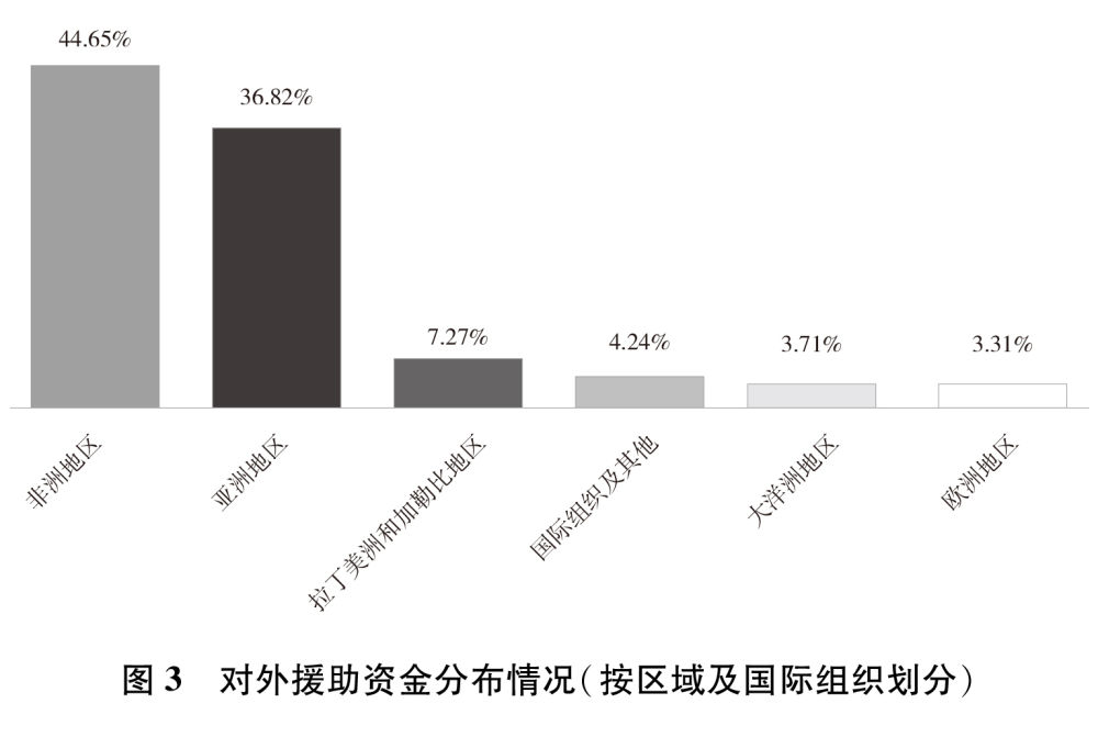 2013年至2018年,中国共向亚洲、非洲、拉丁美洲和加勒比、大洋洲和欧洲等地区122个国家和20个国际和区域性多边组织提供援助。其中,亚洲地区30国,非洲地区53国,大洋洲地区9国,拉丁美洲和加勒比地区22国,欧洲地区8国。