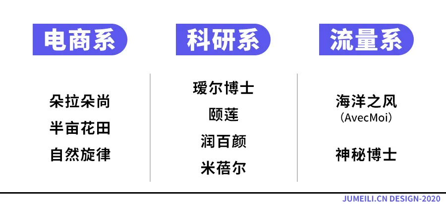聚美丽把济南系品牌根据他们的“出身”情况,分为以半亩花田为代表的从淘内电商转为向淘外社媒平台要增长的“电商系”,在福瑞达和华熙生物这两家有研发背景上市公司内部孵化的“科研系”,以及对流量极度敏感相互抱团互相促进的“流量系”。