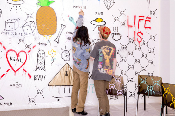 “ 我看到了 Trevor 总是用公司的标识,我觉得还挺天才的。” Michele 觉得 Andrew 并不是在蓄意剽窃,“ 和抄袭完全不同,这主意确实能让 Gucci 走上街头,通过涂鸦这样的语言,还能结合品牌标。”