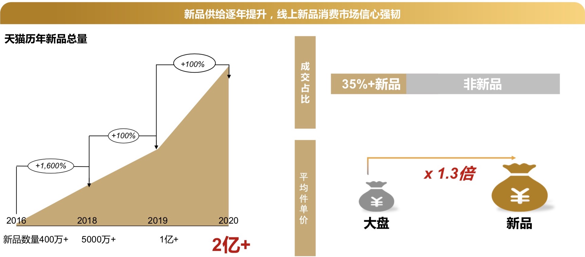 天猫显示:这样解决痛点、命中甜蜜点的新品过去一年增长了一倍,上线超2亿款,交易占比超过35%,头部1000个商家百万以上的新品交易占60%。新品成为品牌击中消费者海马体的关键。