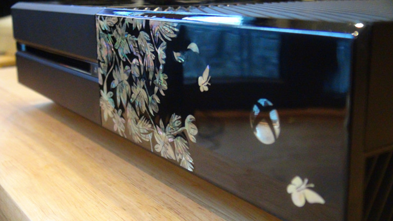 为了庆祝农历新年,在上个月稍早时候韩国微软向幸运粉丝送出了两台特别定制版Xbox One主机。两款主机分别使用传统工艺定制,外观以黑色为基底加上釉色与彩绘效果,由工匠主机的表面上描绘了一幅蝴蝶飞舞于花间的画面,充分展现了别具风格的Xbox One主机的线条美感。此外微软表示这两台主机也是全世界独一无二的,极具收藏价值。