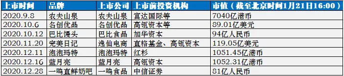 事实上,在整个2020年,二级市场大消费行业的公司都受到投资者追捧。农夫山泉2020年9月在港交所上市,市值超过7000亿港币,并让其实控人钟睒睒一度成为了新任亚洲首富。