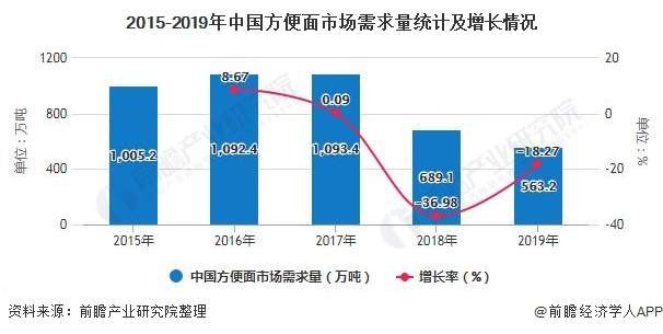 在多种因素的作用之下,消费者对于方便面的需求不断滑落。自2017年增长开始放缓之后,2018年-2019年间对于方便面的需求量迅速从千万吨水平下降至了600万吨。