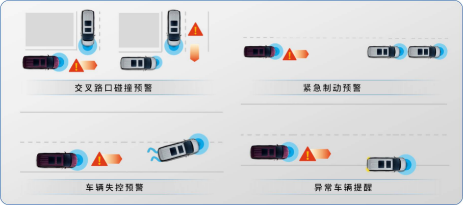 其中,V2V是车辆间通信。通过车载模块进行信息交换,了解车辆车速、位置、路线和驾驶意图。