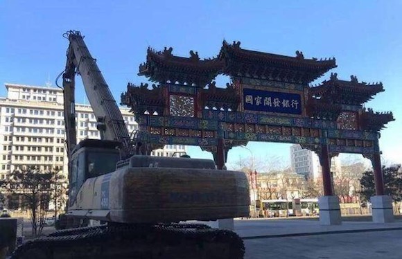 国开行门前的牌坊突然被拆也引发诸多猜测。