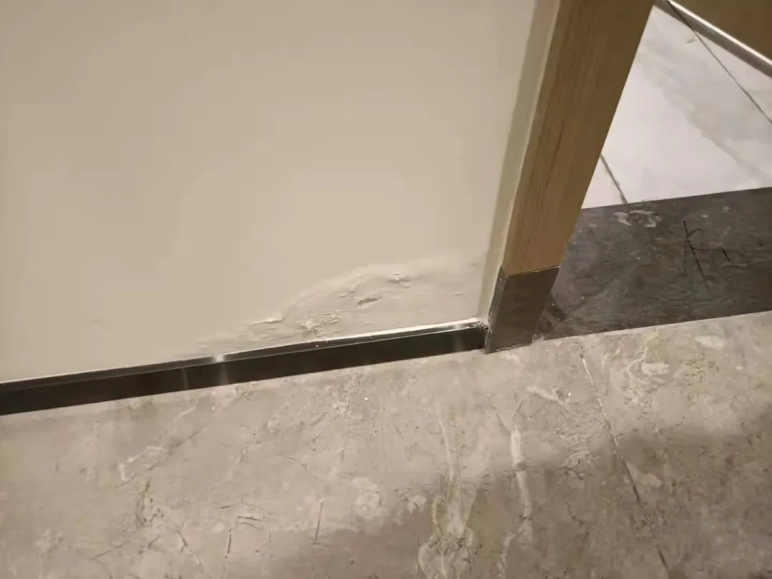 空鼓检测,也是验房的重要一环。从进门处开始,验房师使用空鼓锤仔细敲击墙面进行检查,结果验房师在503室发现该精装房的客厅地面、厨房烟道和东墙、走廊地面、客卫地面和墙面和主卫淋浴间墙面等位置发现大量空鼓且多处瓷砖都存在裂纹破损的问题。