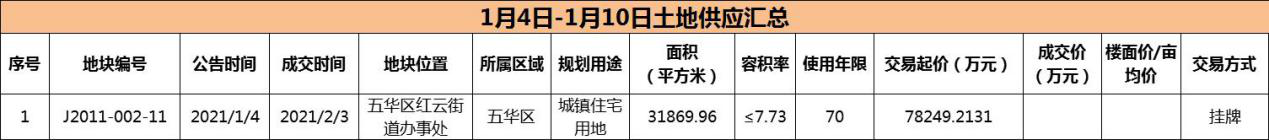 土地供应方面,与前一周相比,土地供应节奏持续放缓。上周本地仅五华区供应了1宗面积约47.8亩的居住用地,交易起价约7.8亿元,起始楼面价约3176元/㎡。