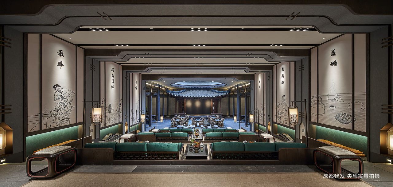 而说到蜀地文化,独具特色的「茶馆文化」怎么会漏掉呢?央玺以蜀地独特的茶馆文化聚集茶社剧场、会客厅、棋牌娱乐等功能。