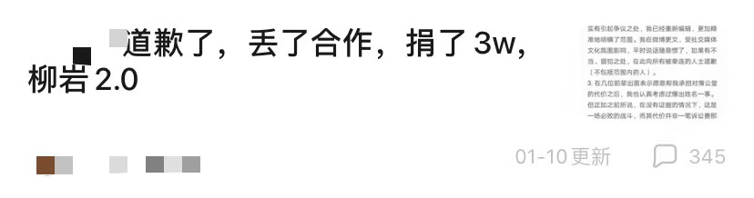 一切纷争都最终都指向了最早发声的受害者。最终的结果是,女作者顶不住压力开始道歉,并且“尚未谈妥的合作也纷纷取消”,为了证明自己发声并不是用来蹭流量和“恰女拳饭”,女作者还捐款3万来自证清白。