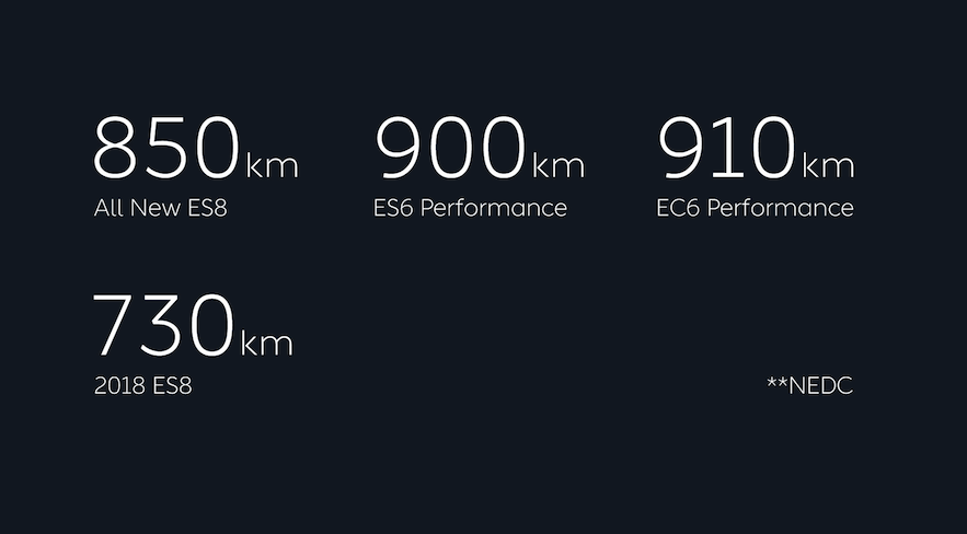 得到“固态”大电池魔法加持的ET7将NEDC续航里程拉长至1000公里以上。即便最老的2018款ES8,在150kWh电池上身后,NEDC续航里程也将达到730公里。