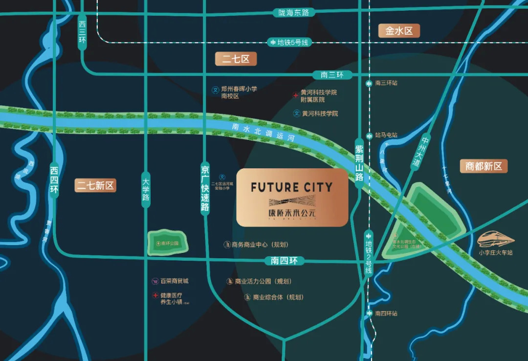 主城新升代,超红大城盘。紫荆山路上,康桥未来公元,千亩AI互联生活城,从规划之初,即倾注无限热情去创造一个充满想象与未来感的家园:在新一线郑州,中原新升代的全龄美好生活愿望,皆可以搭载科技的翅膀,更先一步抵达。