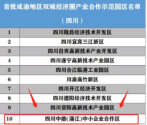 其中,蒲江县中德(蒲江)中小企业合作区榜上有名。