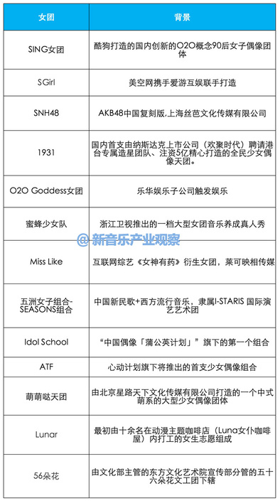 可以想象,在“众创”的大环境下,未来的一两年内,会有更多的偶像团体涌现,五年内甚至有可能出现“百团大战”的盛况,竞争将会十分残酷。
