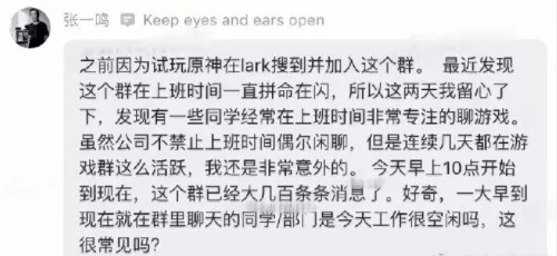 比如前一段时间,互联网大厂里传的沸沸扬扬的“张一鸣怒怼原神群”事件。