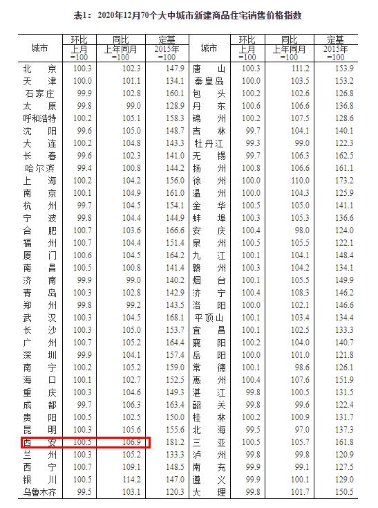 具体到西安来看,12月份,西安新建商品住宅环比上升0.5%,同比上升6.9%。分产品类型来看,2020年12月份西安90㎡以下的新建商品住宅价格指数环比上涨0.1%、同比上涨9%,90-144㎡的价格指数环比上涨0.5%、同比上涨6.1%,144㎡以上的环比上涨0.8%、6.1%。