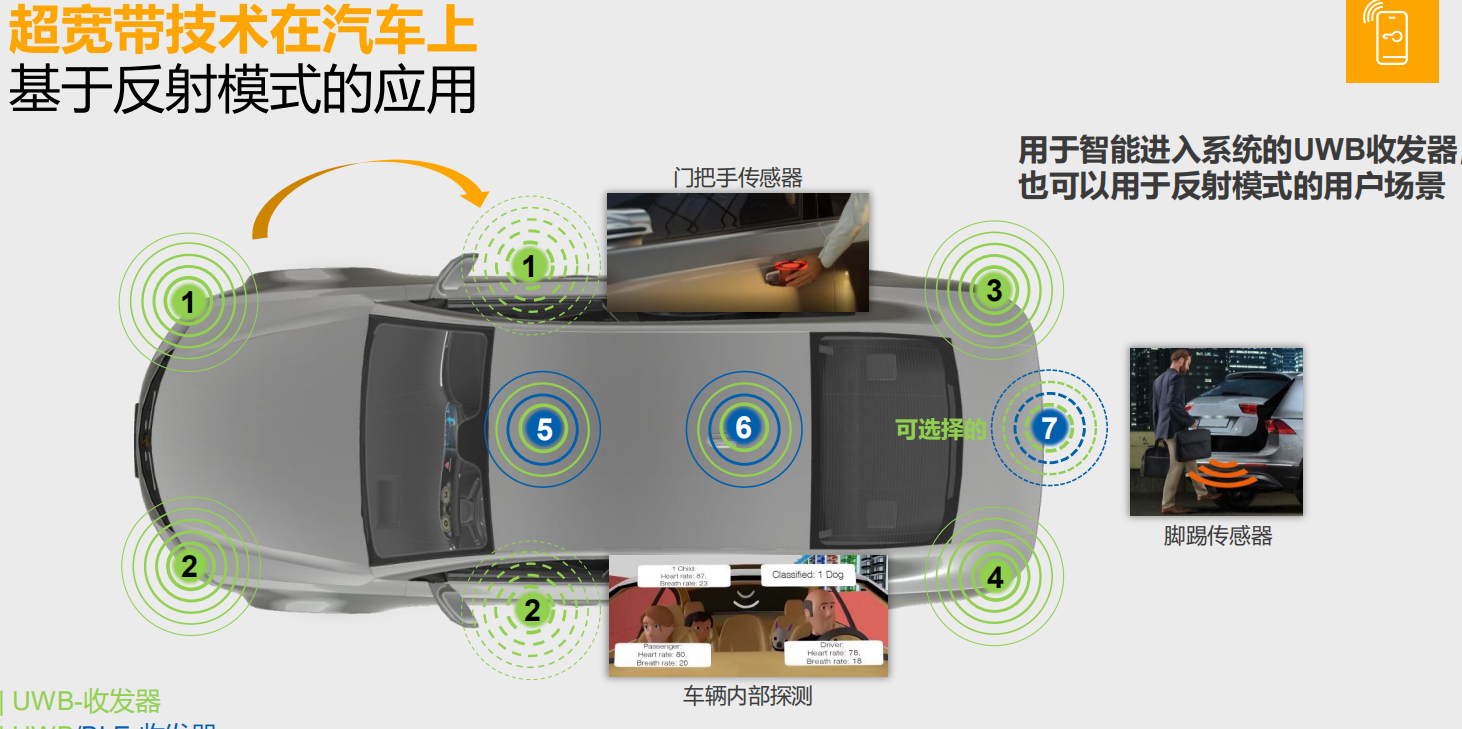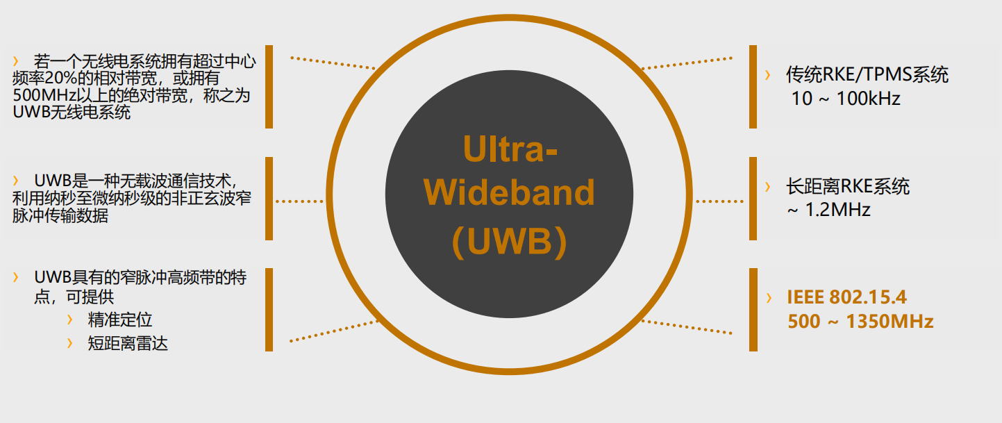 UWB技术具有系统复杂度低,发射信号功率谱密度低,对信道衰落不敏感,截获能力低,定位精度高等优点,适用于高速无线接入。超宽带技术杜绝了中继攻击(relay attack),避免无线电信号受到拦截或干扰。