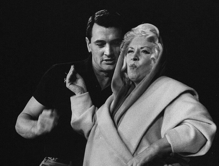 还有一张照片拍摄到了在1958年颁奖典礼中,偶像级演员洛克·哈德森和梅·韦斯特在排练时的珍贵瞬间。“在第30届奥斯卡颁奖典礼上,洛克·哈德森和梅·韦斯特要表演《Baby,it’s cold outside》,”马修说,“在这张有趣的照片中,哈德森走过来,要拥抱女演员梅·韦斯特。”
