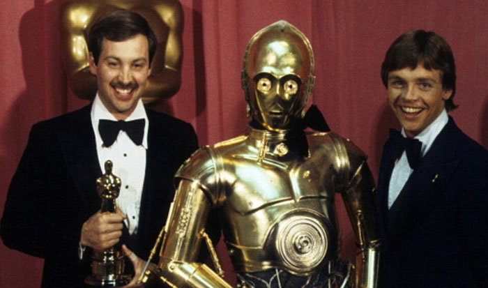 在1978年举行的第50届奥斯卡颁奖典礼中,最重量级的获奖电影之一就是在科幻题材电影类别中有上佳表现的《星球大战》。马修选择的这张照片展示了在电影里给一系列外星人,物种和机器人配音的本·贝尔特,同卢克·天行者的扮演者马克·哈米尔一同领奖的场景。