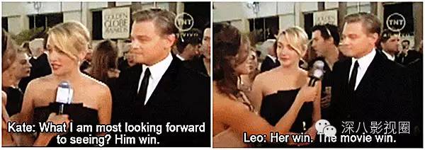 红毯主持问他们,当晚最希望什么结果。温丝莱特说:最希望他赢。小李子说:她赢,还有片子赢。