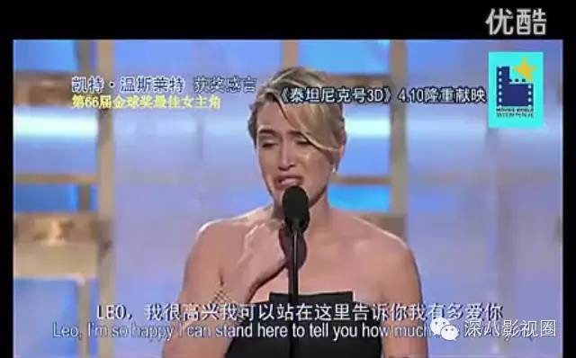 温丝莱特金球奖“告白”这一段,中文视频配文是各种煽情啊。