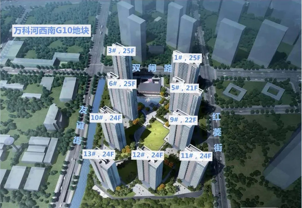 项目前身是河西南G10地块,于今年 4 月 30 日,被万科以 43.5 亿元拿下,楼面地价 40196 元 /㎡。根据规划,项目共建9栋住宅,楼层数21-25层,户型建筑面积为143㎡、190㎡、230㎡的全四房设计。