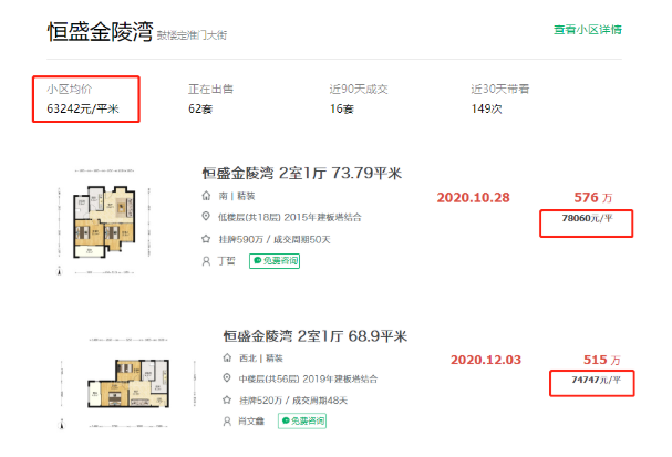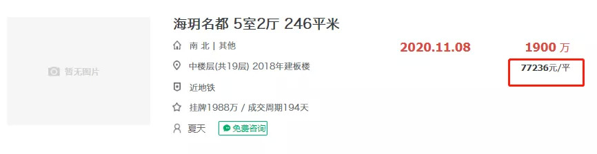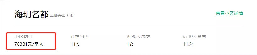 根据链家网显示,目前项目前期房源二手房挂牌63242元/㎡,成交的二手房均价已突破7.8万/㎡,而12月份项目二手房最高成交价为74747元/㎡!