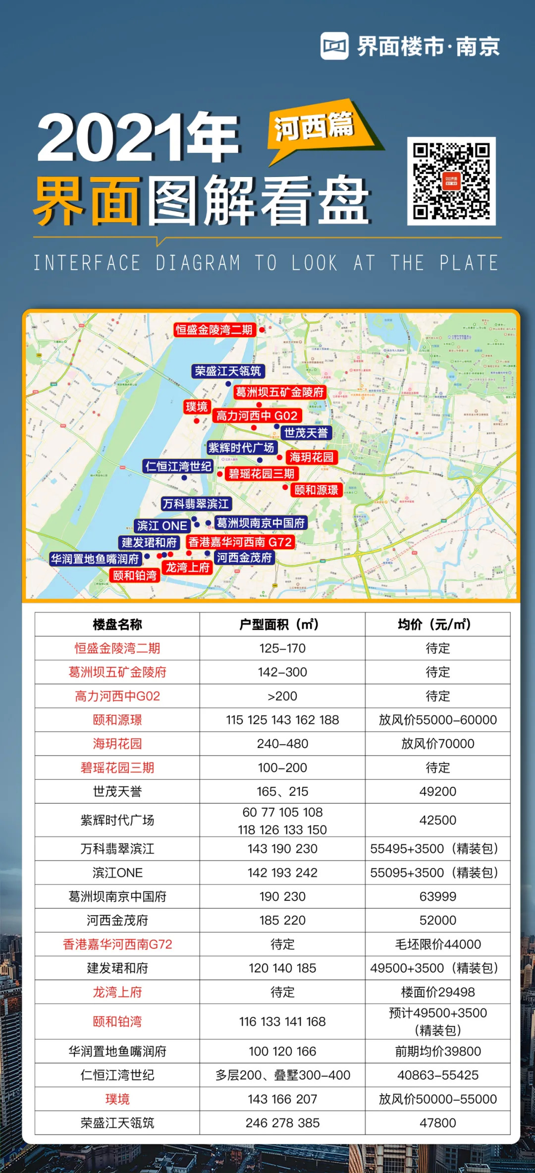 于是,界面楼市南京站整理了一份2021年图解看盘,其中河西篇2021年预计有20家楼盘可售,其中一半的楼盘为纯新盘(包括新的组团),这些楼盘主要以河西南最为集中。