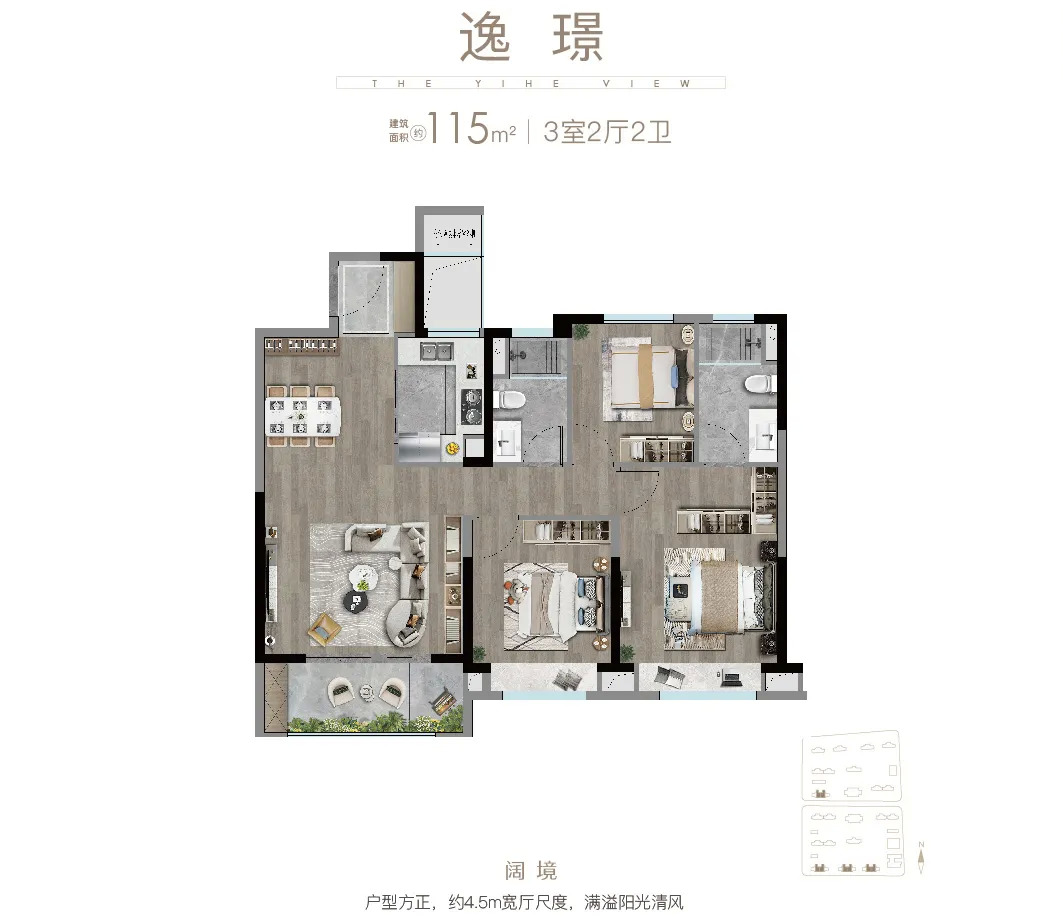 建面约115㎡ 3房2厅2卫户型