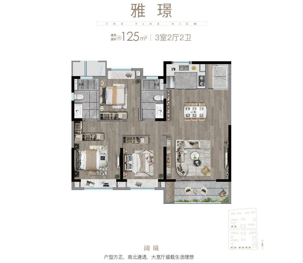 建面约125㎡ 3房2厅2卫户型