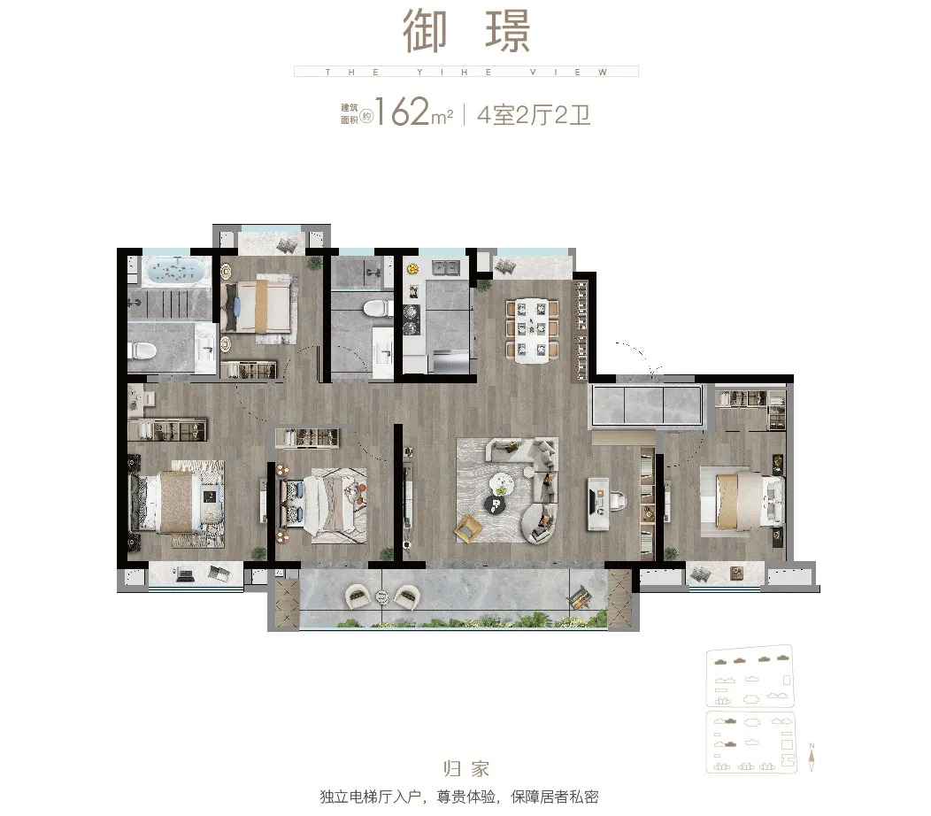 建面约162㎡ 4房2厅2卫户型